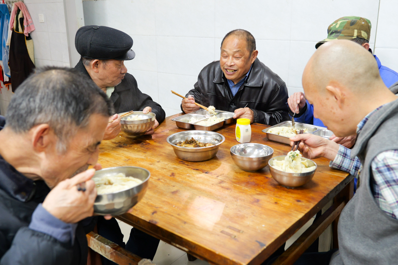 老人品尝饺子,脸上洋溢出幸福的笑容